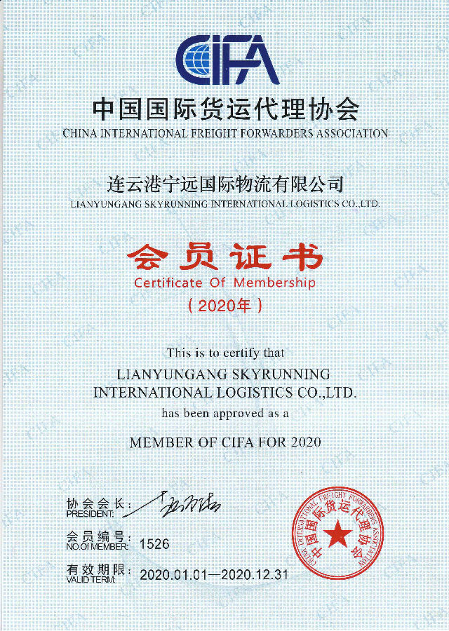 中国国际货代协会会员证书2020