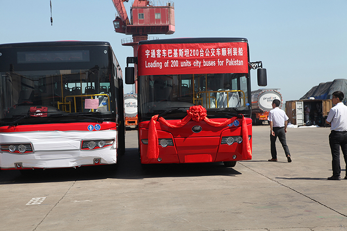 热烈祝贺宇通客车巴基斯坦200台公交车顺利装船,此次为巴基斯坦市场首次大批量发运,我公司各部门紧密配合、与各相关单位通力合作,圆满的完成宇通客车巴基斯坦项目。